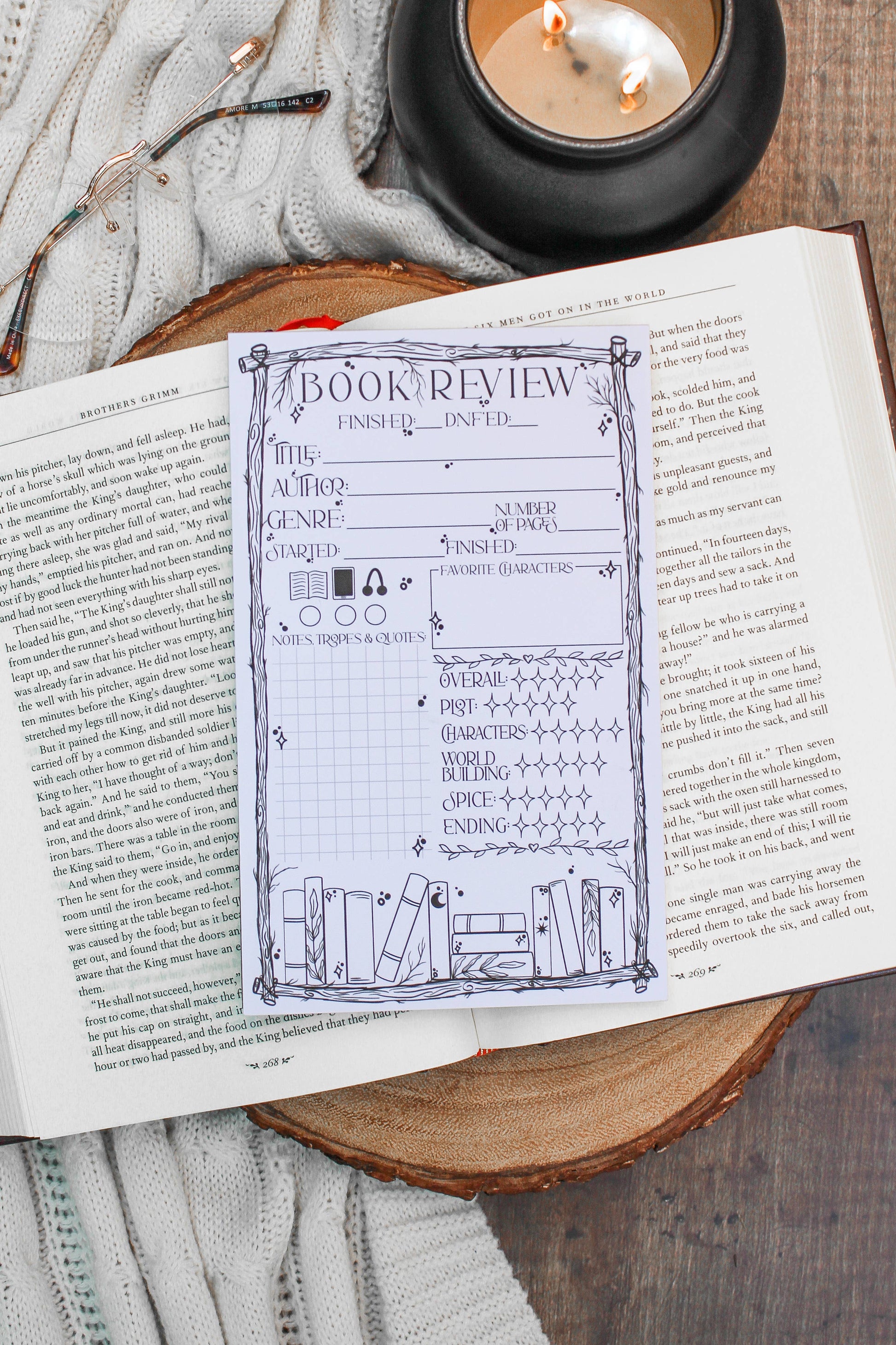 This hand-drawn 5x8 book review notepad is the perfect reading journal alternative for those of us who aren't quite consistent enough to keep a reading journal but still love the option to write down our thoughts about the books we invest so much of ourselves in. Just fill a page out, rip it off, and stick it in the front of your book so you can always find it when you need it. Or, add it to a bullet journal and integrate your reading habits with your everyday journaling.