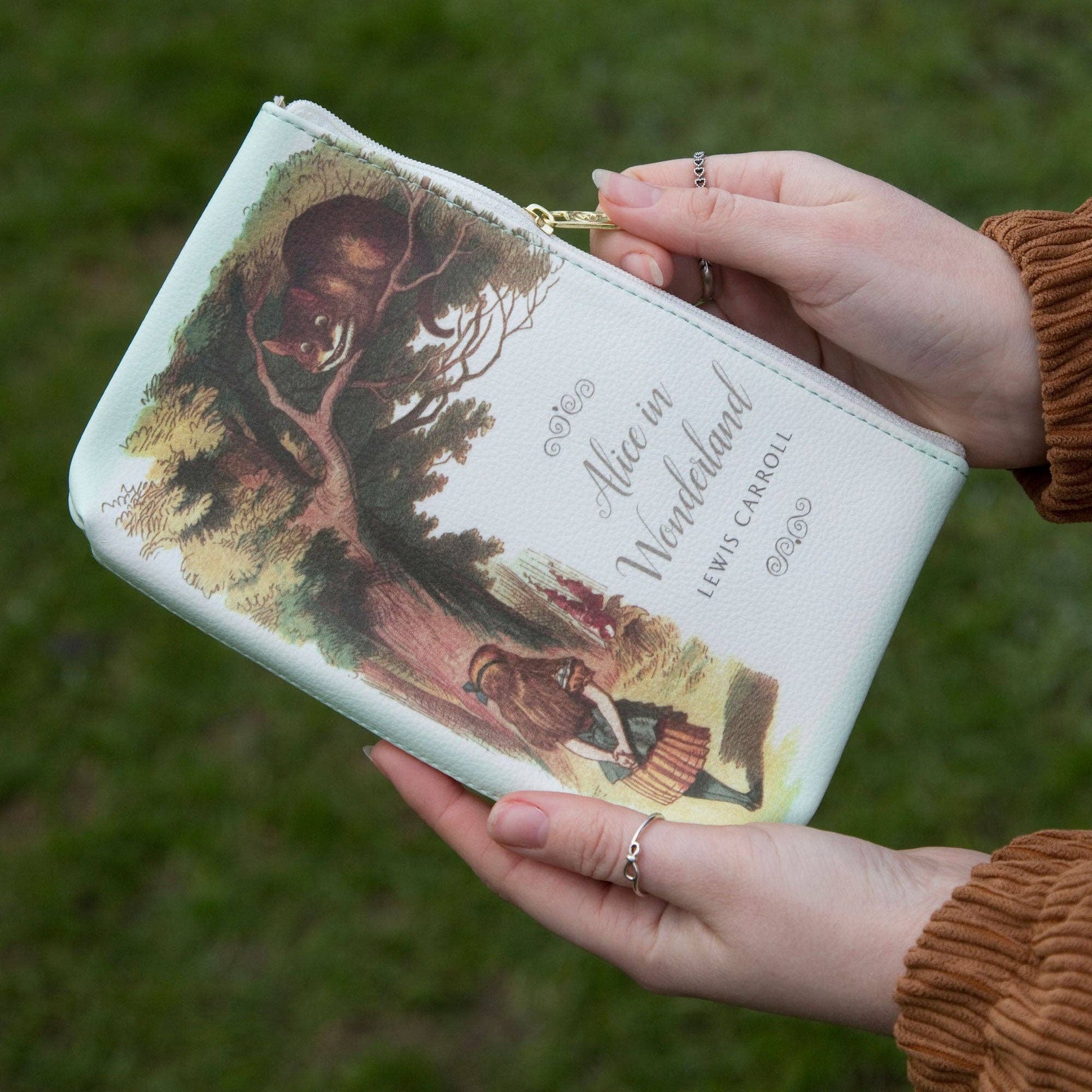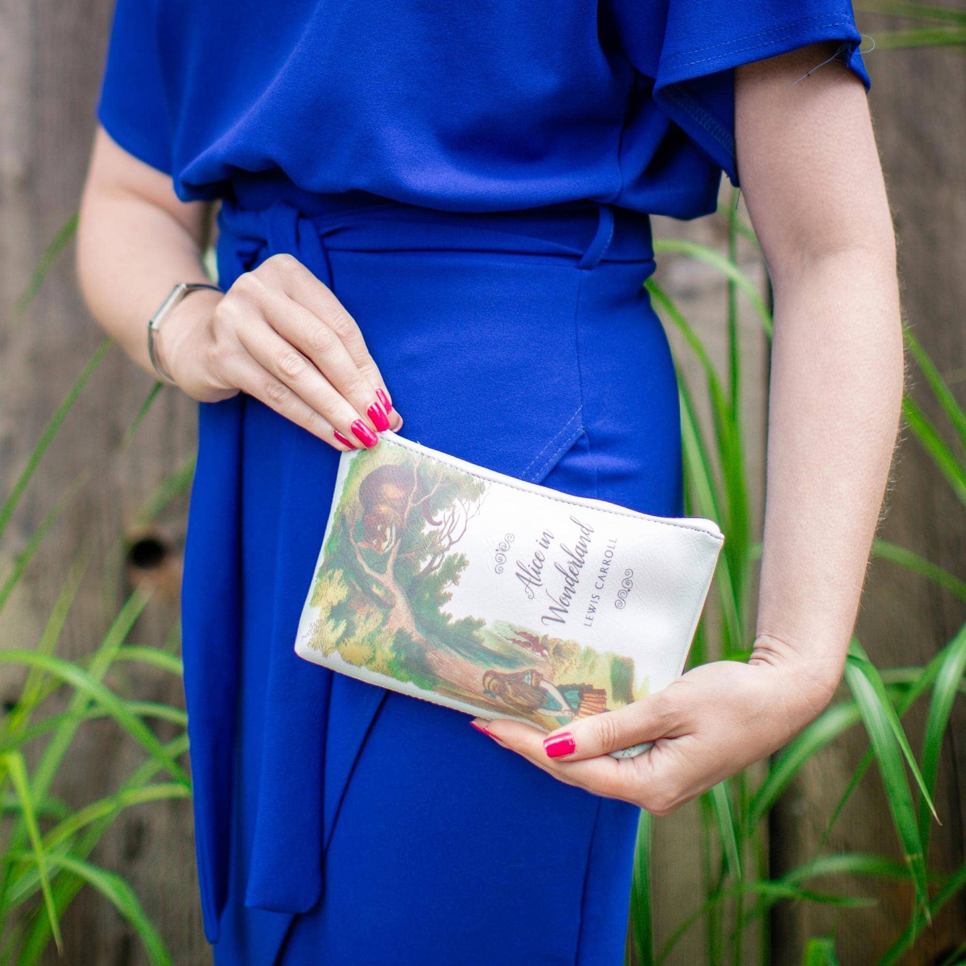Marry easy storage with a display of your passion for literature with this handy green pouch purse. Featuring C.S Lewis’ celebrated novel The Adventures of Alice in Wonderland, and made from vegan leather.