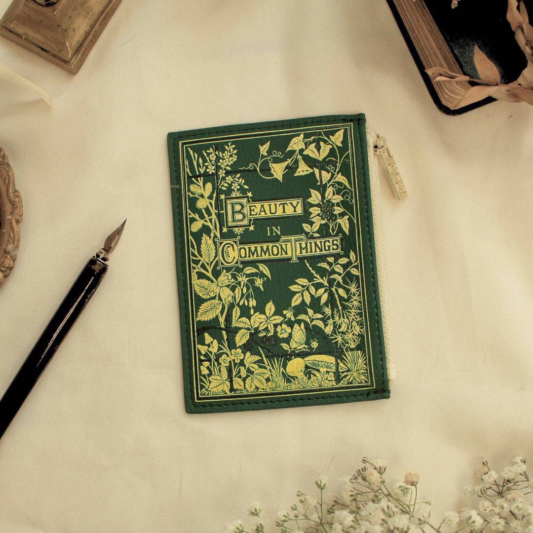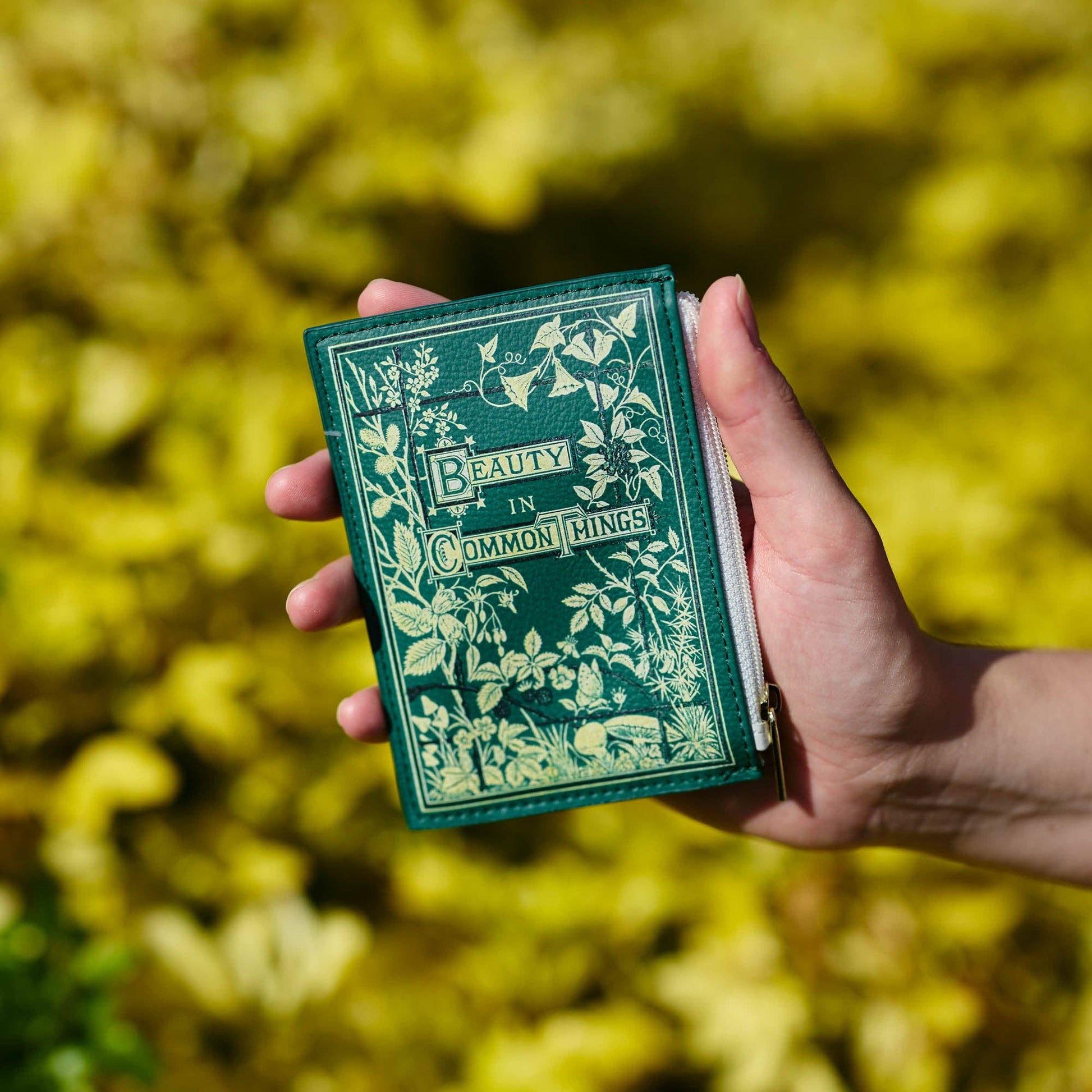 Celebrate the beauty of the natural world with this striking vegan leather coin purse, inspired by Miss A. C. Chambers' book 'Beauty in Common Things', published in 1874. This book is notable for its deep appreciation of everyday plants and flowers found across the United Kingdom, blending botany, poetry, and art in its pages. The coin purse features a beautiful botanical illustration set against a rich green backdrop, perfectly capturing the book's essence. Whether you're dressing up for a formal occasion or simply going about your everyday routine, this purse is sure to add a unique touch to your outfit, just as the book adds a unique touch to literature.