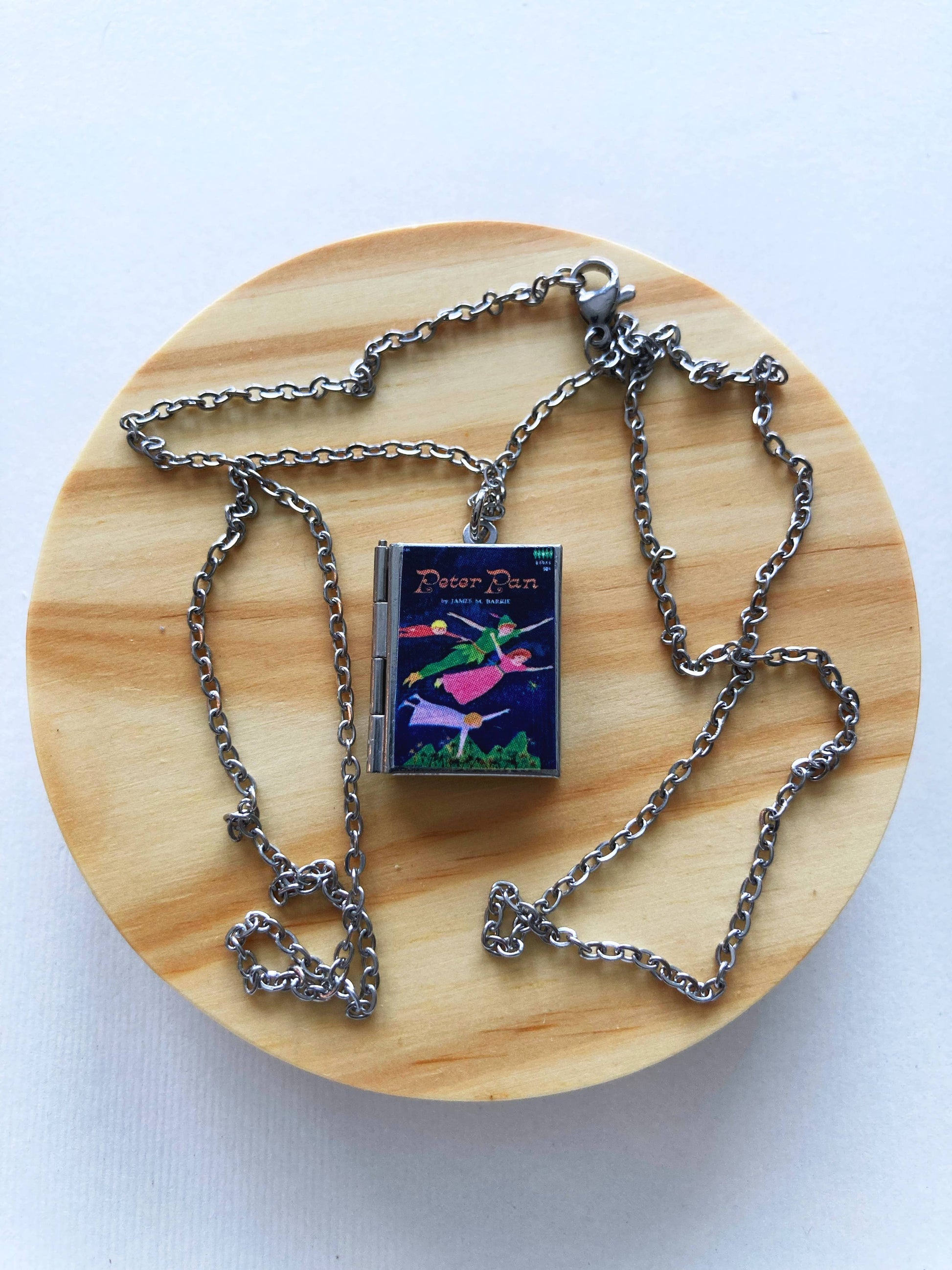 Our book lockets are made with nickel free materials and feature the most beloved classic books! They are on 24-inch chains and are sealed with a gloss finish for durability. Each locket can hold two pictures.