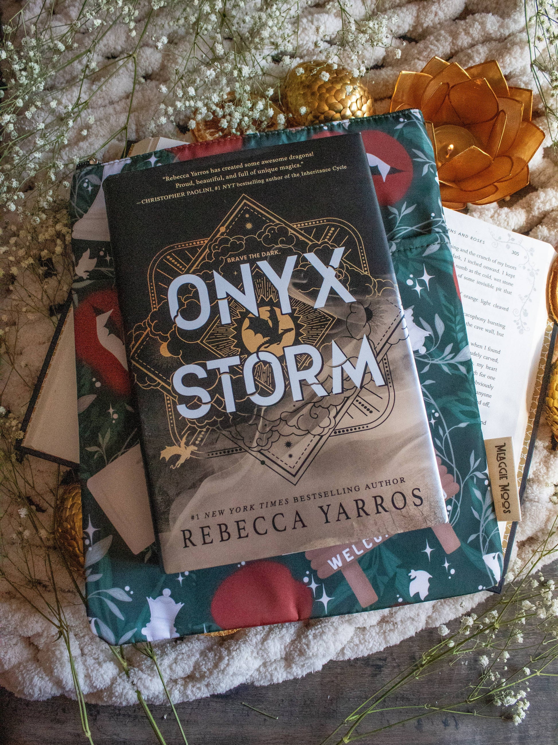 This large water-resistant book / tablet sleeve was designed by a reader for readers. This book sleeve is large enough to hold even the chonkiest of fantasy novels and will keep them safe along your travels.