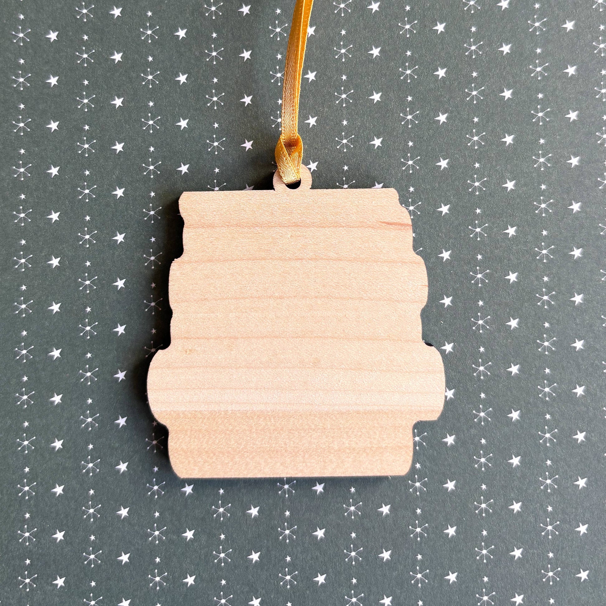The decoration comes with a double-faced satin ribbon for hanging on a tree, hook or handle. Choose between five different colour ribbons at no extra cost.