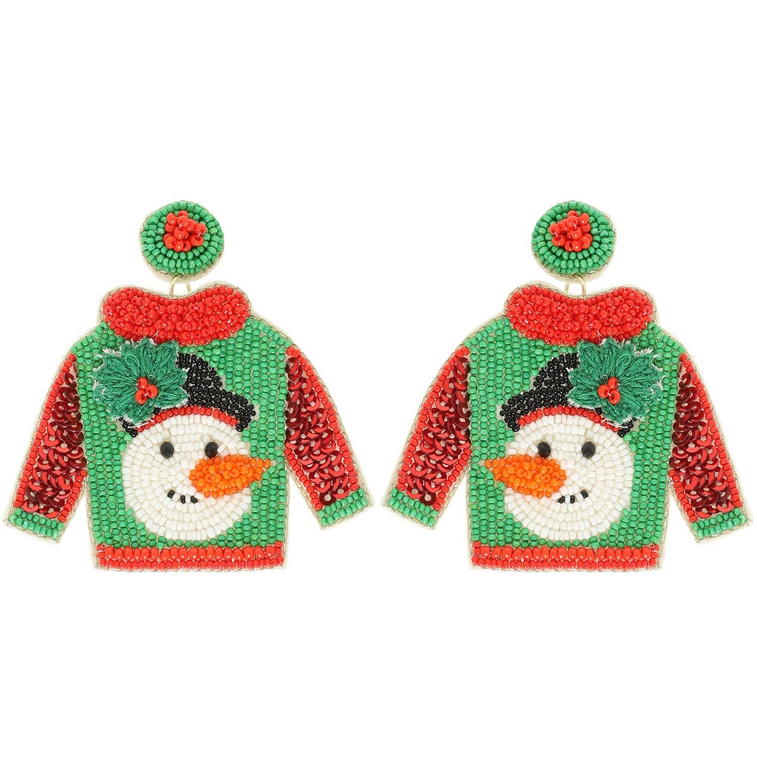 CHRISTMAS UGLY SWEATER SNOWMAN EARRINGS
