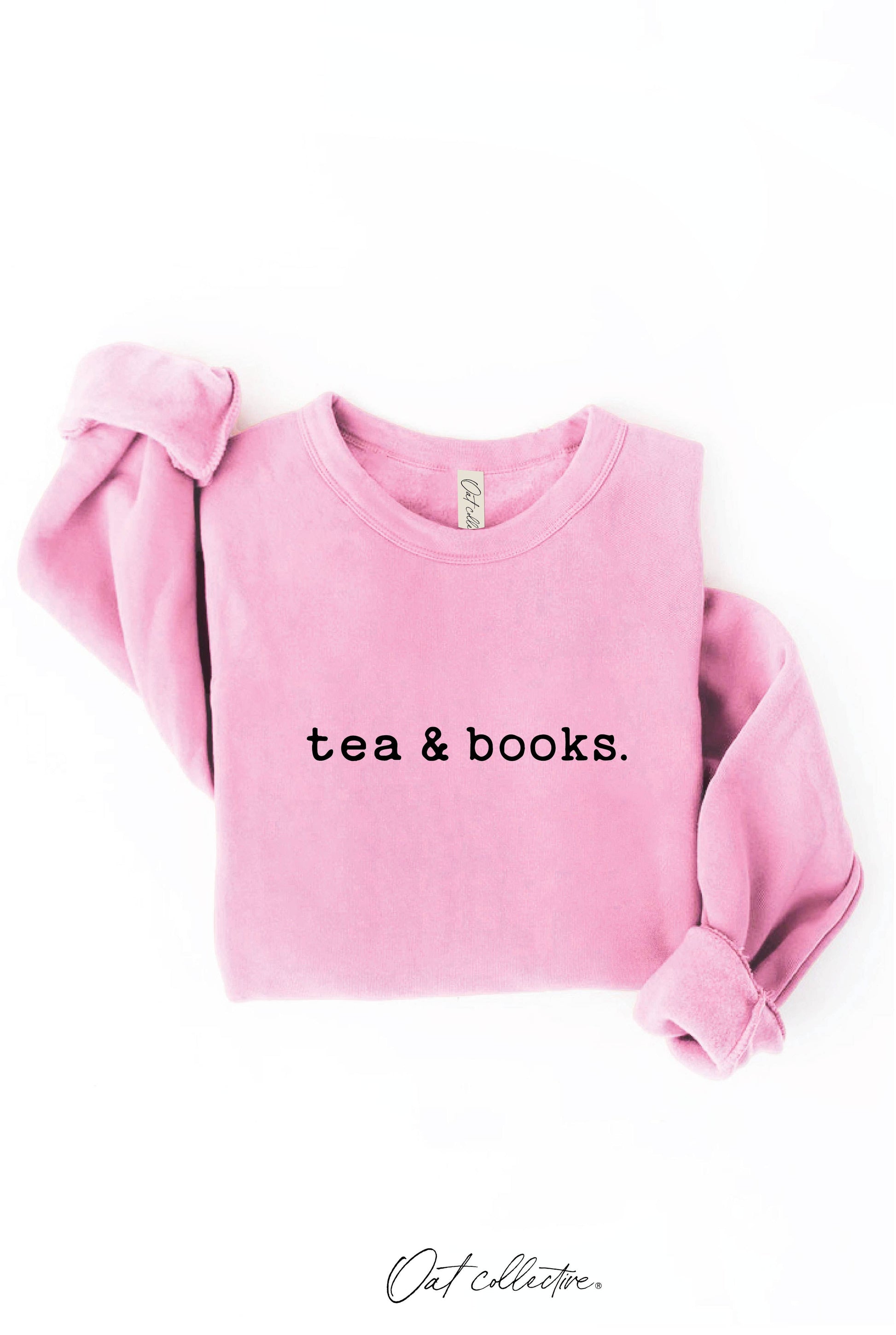 TEA AND BOOKS Graphic Sweatshirt Unisex Fleece Pullover Relaxed Fit