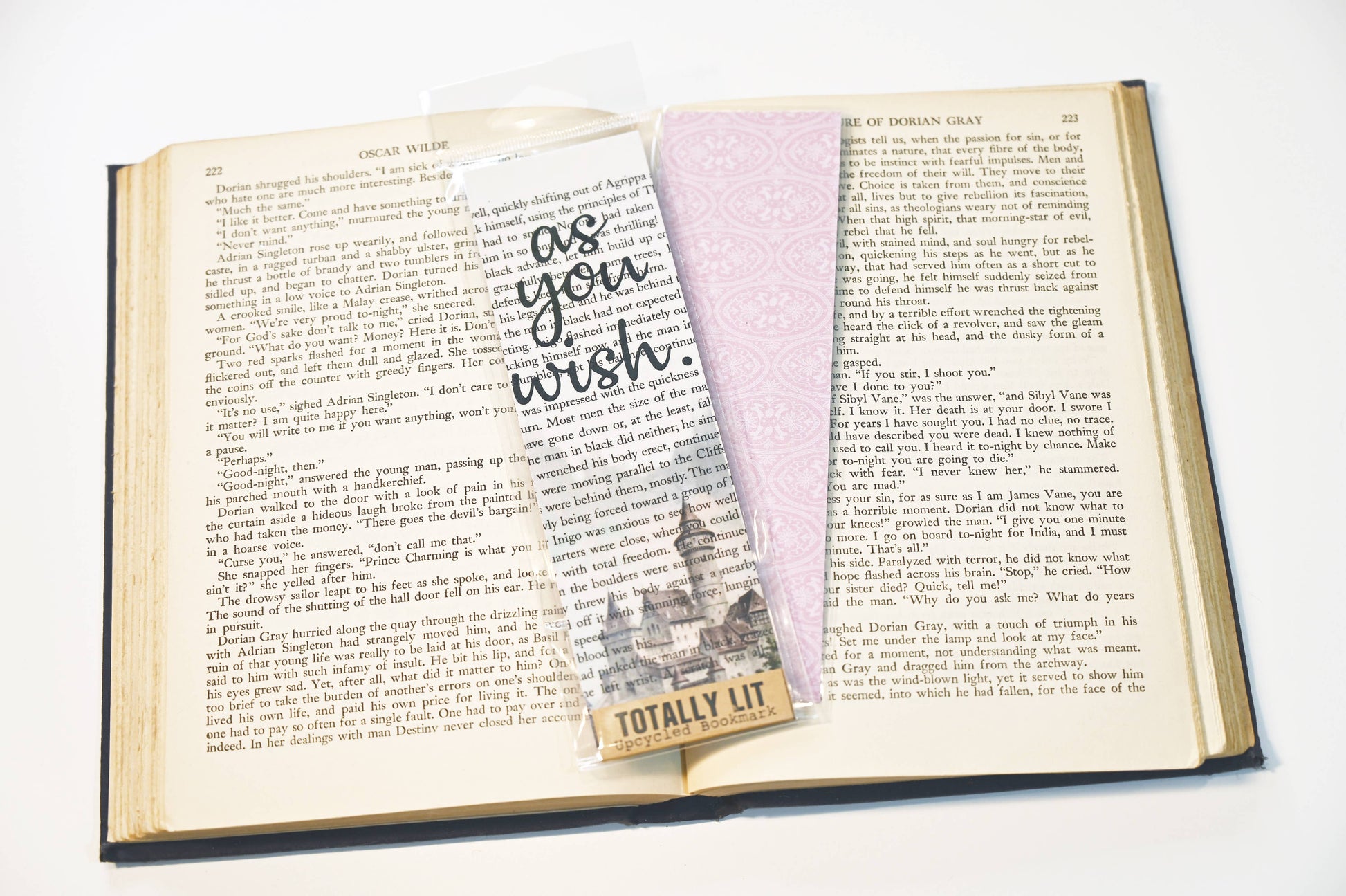 Save your place with your favorite book! Made from pages of damaged books, printed with well-known quotes, and laminated to last, these bookmarks will delight any bibliophile.  (Pattern on reverse side will vary from sample shown.) 2" wide, length varies by book/edition.