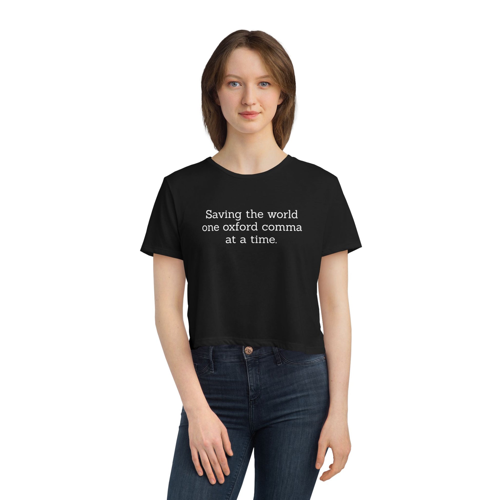 Oxford Comma Enthusiast Funny Quote Flowy Cropped Tee